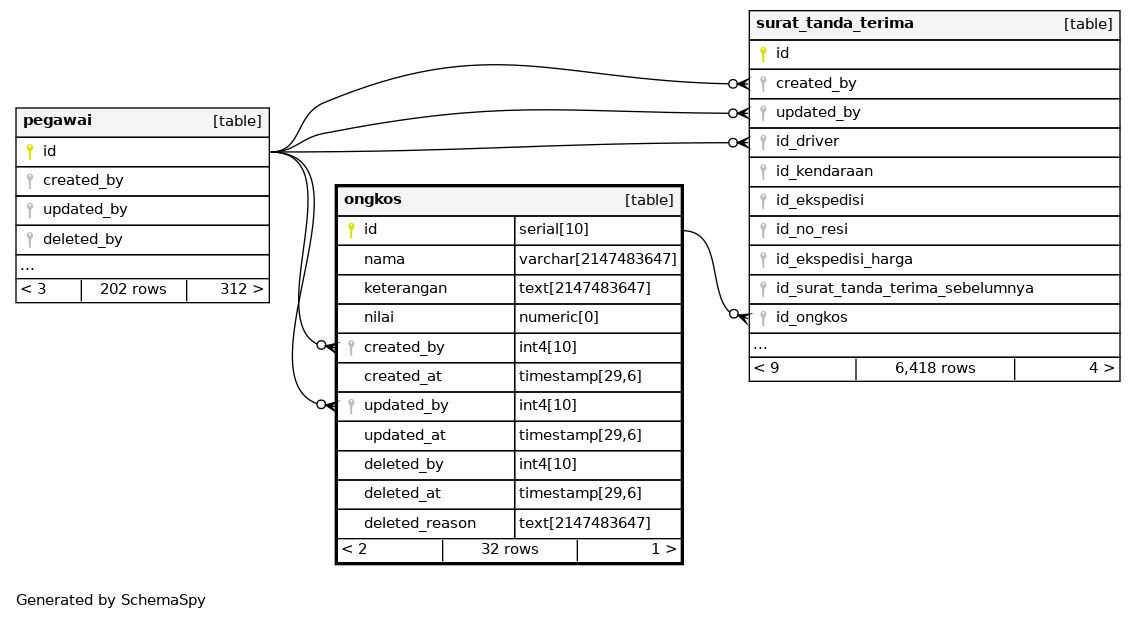 | ongkos_pkey | Primary key | Asc | id |