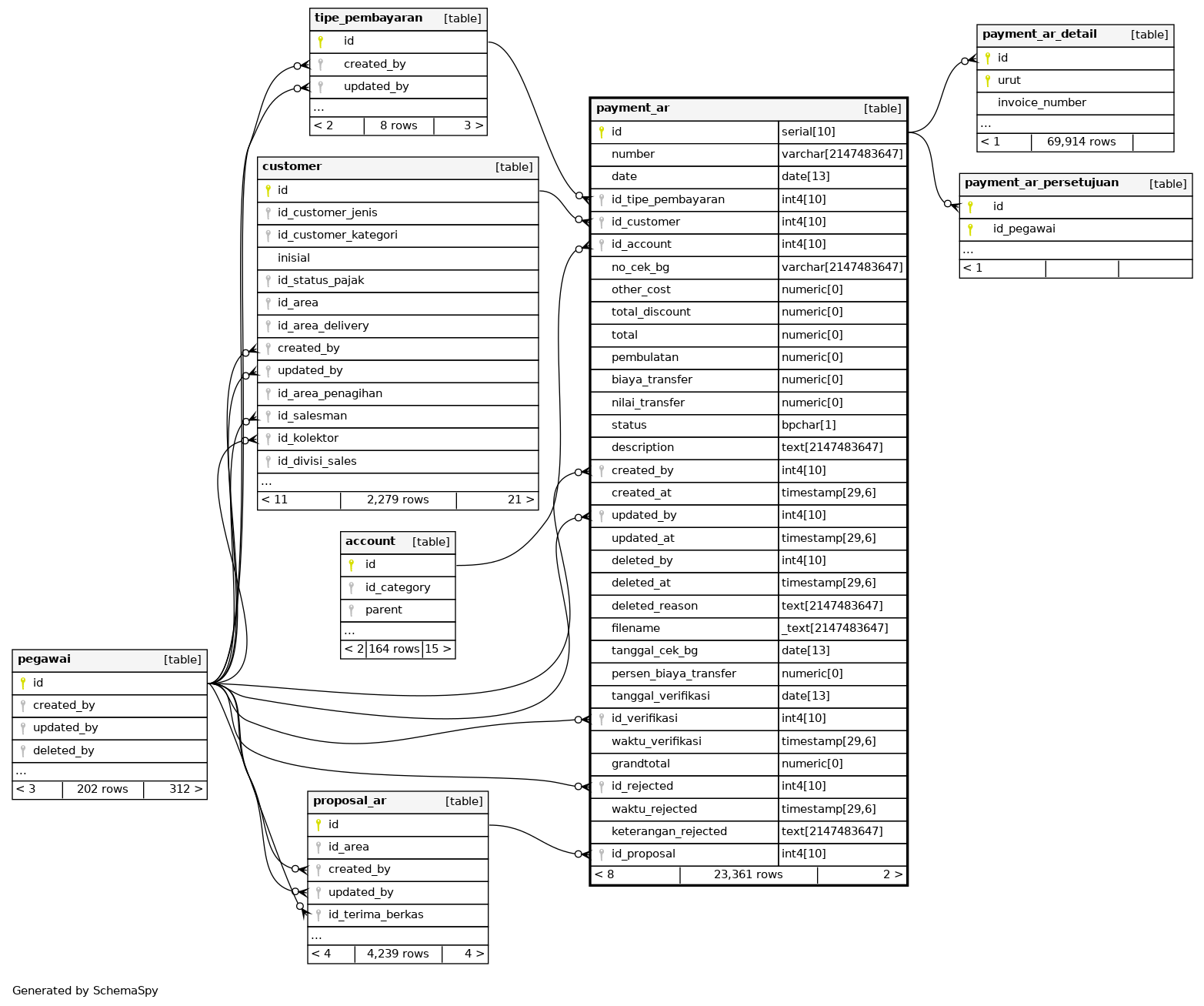| payment_ar_pkey | Primary key | Asc | id |